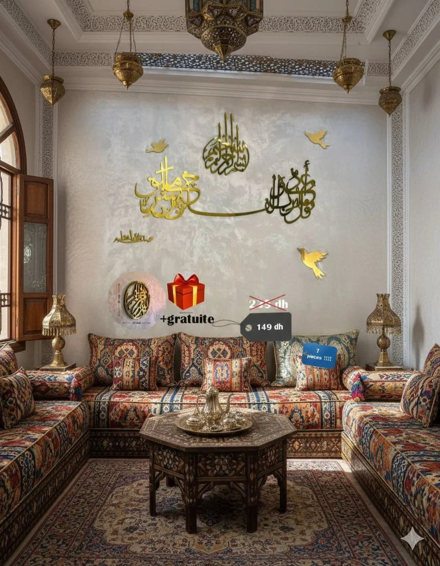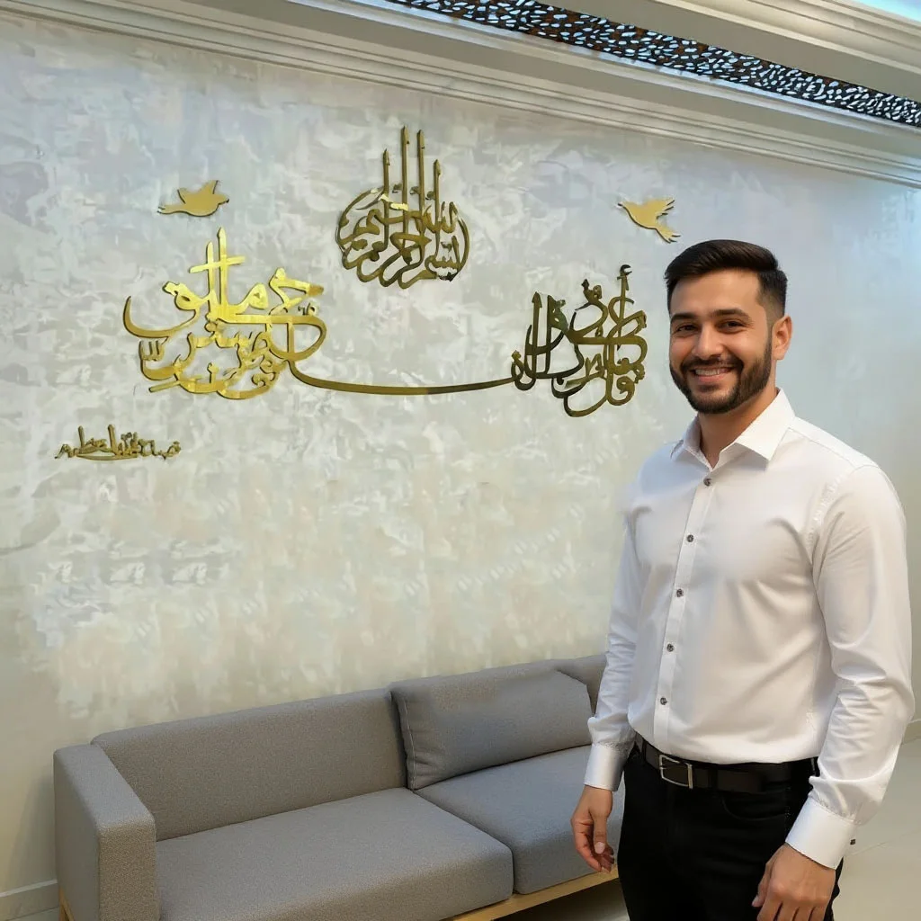 مجموعة مكونة من 7 قطع سورة الاخلاص ذهبية اللون 100/30 سنتمتر + البسملة 30/20 سنتمتر + صدق الله العظيم 20/10 سنتمتر +2 فراشات + قطعتين مزخرفتين على الجانبين (copy)